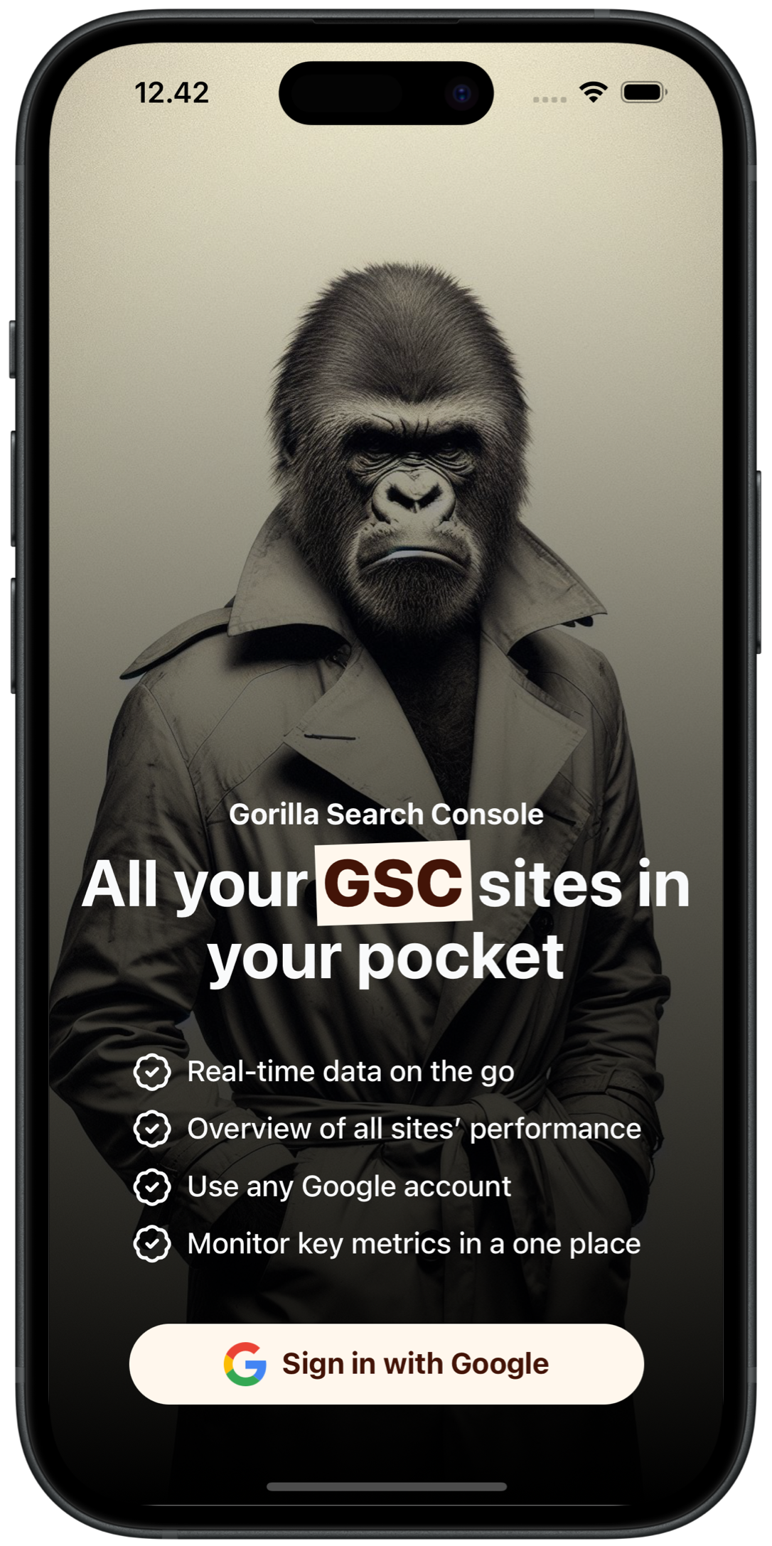Bring Google Search Console into your pocket with Gorilla Search Console for iOS and Android. The GSC app features a great overview, beautiful charts, and filtering. Download today in your app store.