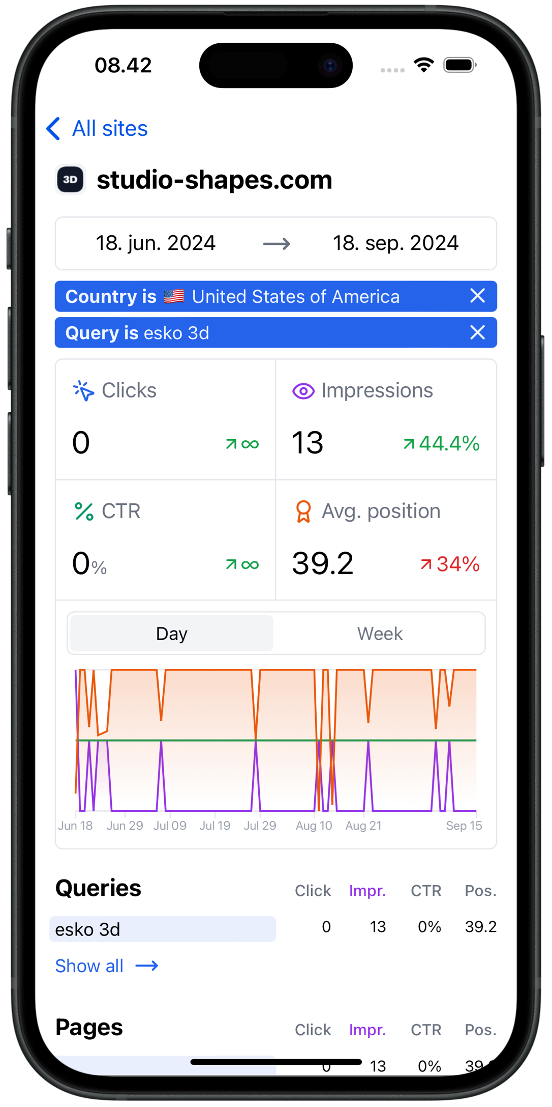 Filter your data by query, country, page, or device. Get the insights you need.